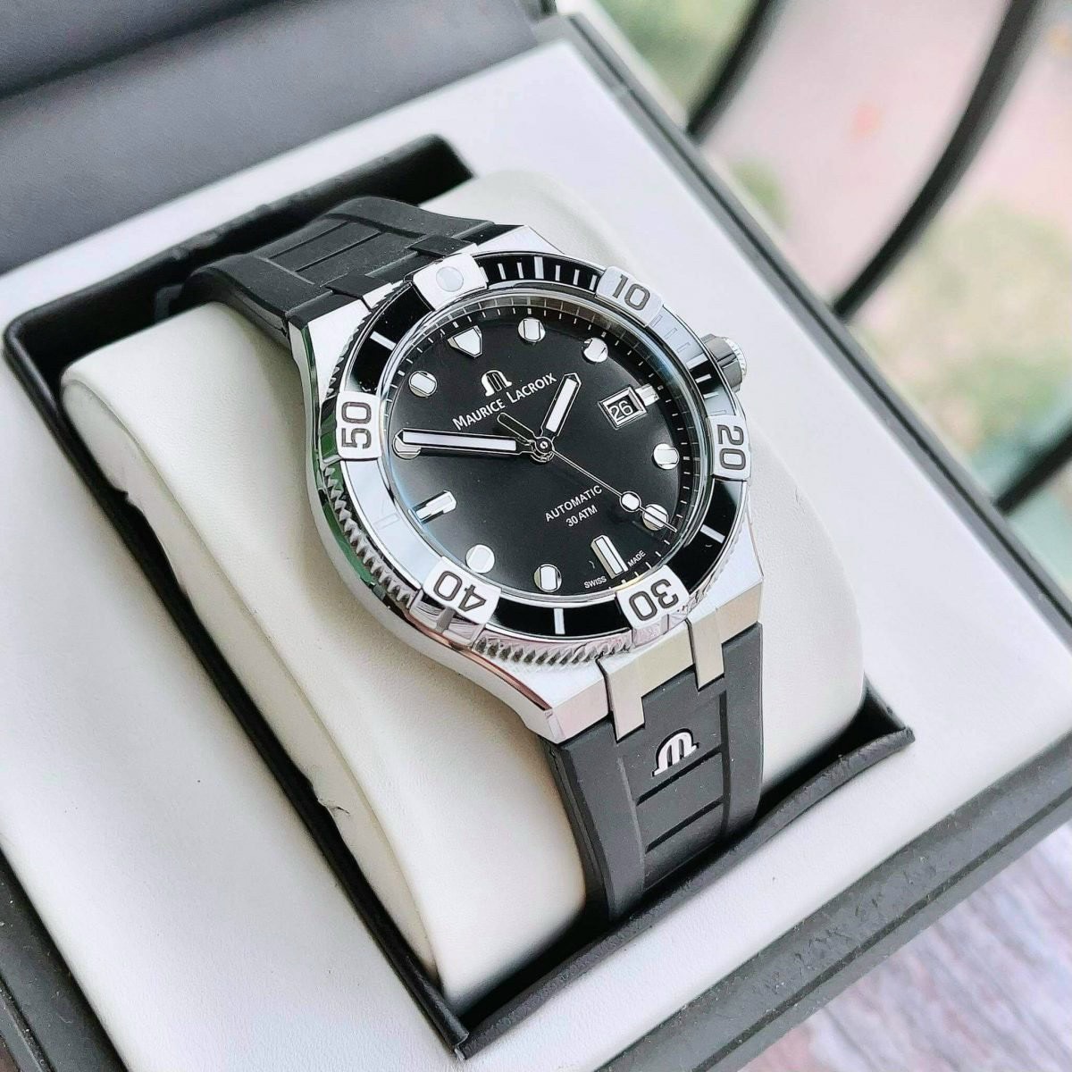 - Đồng Hồ Nam Maurice Lacroix Diver Automatic Aikon Black Dial AI6058-SS001-330-1 thiết kế tuyệt đẹp của nhà Maurice Lacroix rất hiếm hàng trên thị trường, mang đậm phong cách thể thao, nam tính lên tay rất đẹp nha anh em. Dial Đen chải tia đẹp mắt, kim cọc số dạ quang, bộ máy ML115 với 26 chân kính , 28.800vph và 38h tích cót.