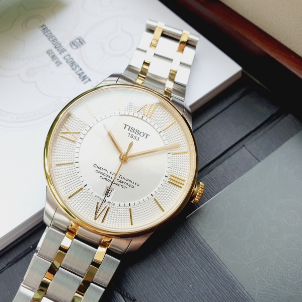 - Đồng Hồ Nam Tissot Chemin Des Tourelles Powermatic 80 Cosc T099.408.22.038.00 sử dụng bộ máy powermatic 80 chronometer đạt độ chuẩn xác cực cao, đã trải qua các thang đo khắc nghiệt của Thụy Sỹ. Vẫn là 1 mẫu Dresswatch điển hình với mặt số tròn, dây kim loại đan xen kẽ 2 màu trắng bạc và demi sang trọng cho quý ông.